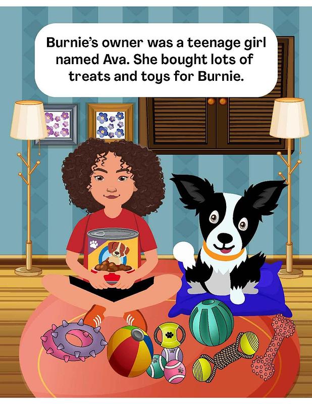 Burnie was an easygoing, happy dog who never had to share his space with another animal. While that pleased him, the solitude meant he never learned social skills; he never had to share food, owner’s attention, or toys. When Ava’s brother brought his canine companion, Chloe, over for a visit, Burnie learned that when it comes to dinnertime, one must eat fast if they don’t want another pup to help themselves to seconds. In other words, guard your food bowl!