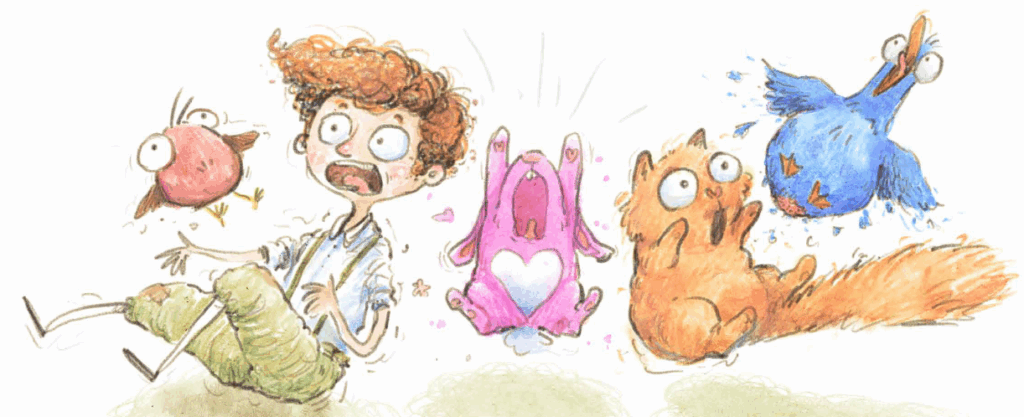 The heart on the bunny’s belly was a sweet touch. The rescued animal looked adorable in their tutu. Milo’s (the cat’s) facial expression and sarcastic tone when meeting the bunny for the first time were quite humorous. The dance party scene will tickle some ribs. Plus, let’s not forget that every page encourages readers to get up and move with visual prompts.
