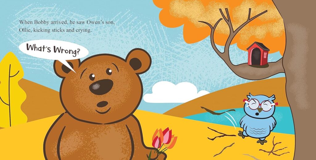We first met Bobby and his forest friends in Bobby the Bear and His Big Surprise, book one in the adorable series. We watched animal friends band together to throw a surprise birthday party for their dear friend, Bobby. In Bobby the Bear Helps Build a Nest, book 2 in the series, Bobby returns the nice gesture and lends a helping paw to his crying friend – Ollie the owlet.
