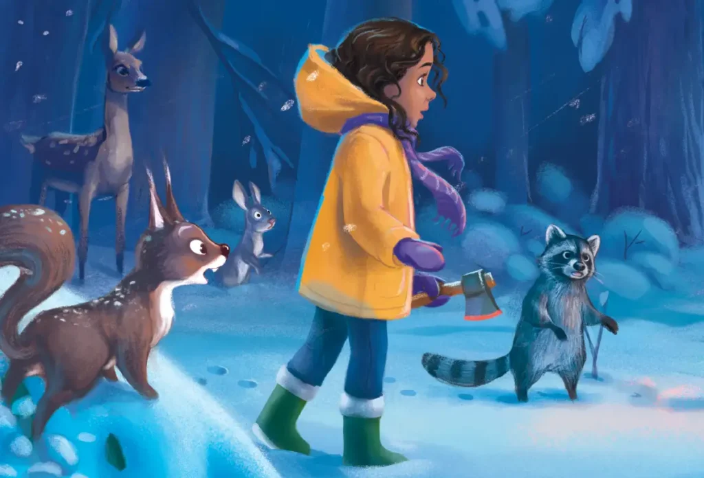 It was the night before Christmas, and a darling girl was nestled under a blanket, reading a book by firelight. Her house is filled with the lovely aroma of freshly baked cookies and piping hot stew. All is quiet inside the farmhouse, but outside, something is stirring in the darkness. The sweet young lady swallows her fear and ventures out into the cold winter’s night, but not without an axe. Brilliant idea, especially since she has no idea what awaits her in the dark woods.
