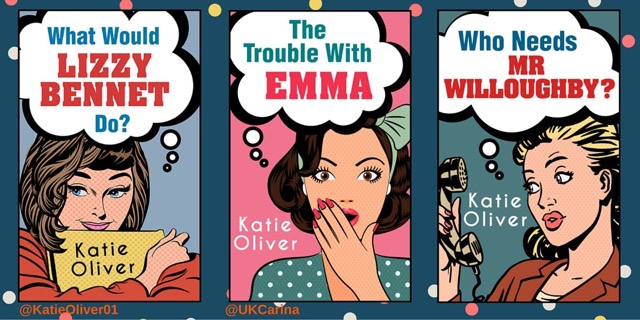 The new books are re-imaginings of three beloved Austen novels, Pride and Prejudice, Emma, and Sense and Sensibility. My modern-day retellings are titled What Would Lizzy Bennet Do?, The Trouble With Emma, and Who Needs Mr Willoughby? Carina’s art department came up with gorgeous pop art covers based on vintage designs. I absolutely love them.