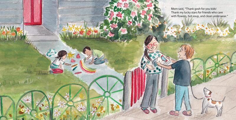 My husband reminds the kids to use their library voice while indoors. They make sure I always have a drink nearby. My youngest also brings me a stuffed toy that is supposed to “chase the sick germs away.”
