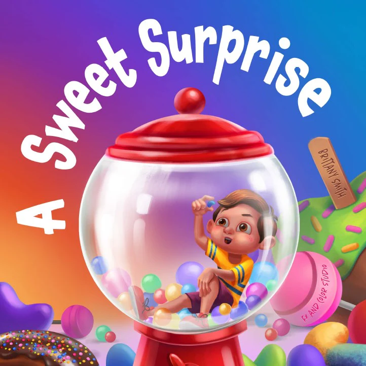 The author and their design team did a fantastic job constructing A Sweet Surprise. Families will love the playful and creative way the text is displayed. My two favorite pages are the upside-down words and the page where words are arranged to mimic a staircase. The brightly colored illustrations will activate everyone’s sweet tooth, even those who prefer savory over sweet! And the unicycle-riding giraffe wearing purple pajamas will tickle your funny bone!