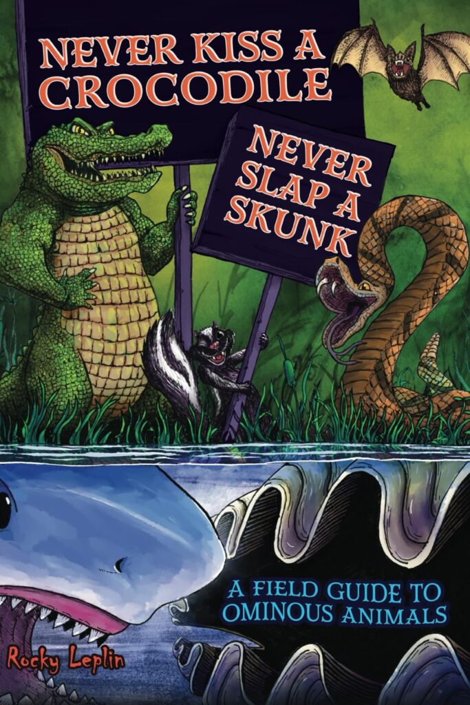 Never Kiss a Crocodile is the sixth book of rhymed verse poetry, most of them about mythical and imaginary creatures, by Rocky Leplin. But it’s the first that is non-fiction, though with Leplin’s signature semi-eccentric edge.