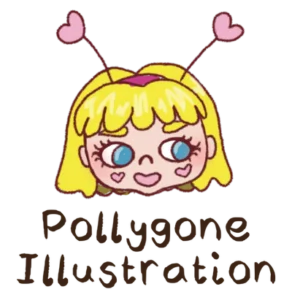 Online, she shares her artistic journey through her YouTube channel, “Pollygone Illustration,” and extends her creativity to real-world products she designs, illustrates, and sells on her website.