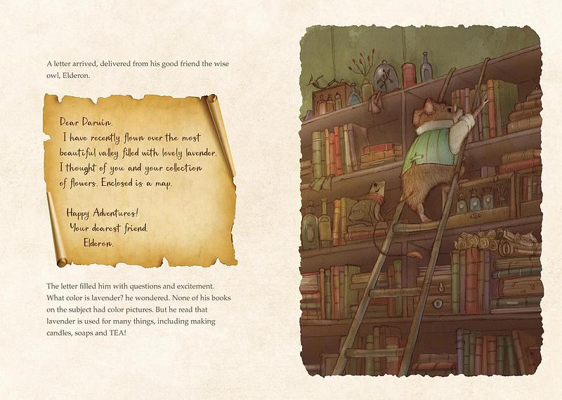 Darwin’s friends knew of his appreciation for flowers. One night, as Darwin was sitting at his writing desk, his good pal Elderon delivered a letter explaining that they saw the most beautiful lavender fields during one of their flights. They’ve drawn a map leading Darwin to its location. Much like the adorable mouse, kids might wonder what color lavender is. What is it good for? Readers will find out both answers as they listen to the story unfold.